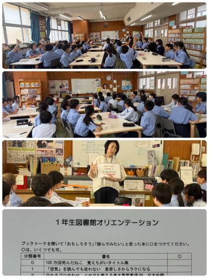 5/21、28、6/3に、1年生を対象に図書館オリエンテーションをしていただきました。