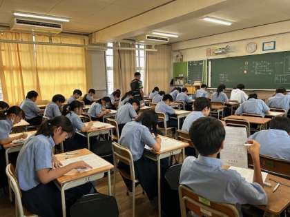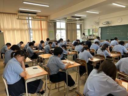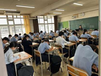 昨日に引き続き、期末テストです。今日は 1限目国語、2限目理科、3限目保健体育(1年生)音楽(2年生)美術(3年生)です。最後まであきらめずにファイト!!