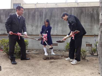 本日、3月4日(金)の6時間目に、42期生(3年生)による植樹式が