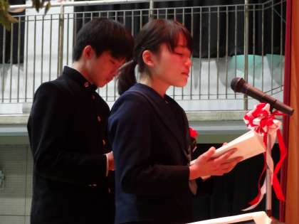 式辞に続いて、在校生代表生徒による送辞が述べられました。