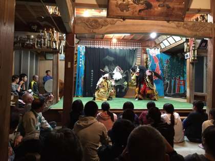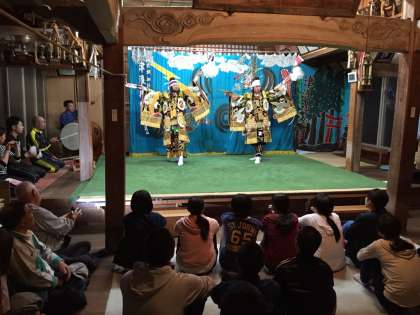 行いました。幾つかの班は神楽(かぐら)の練習を見学に行きました。地元の伝統芸能に触れ、