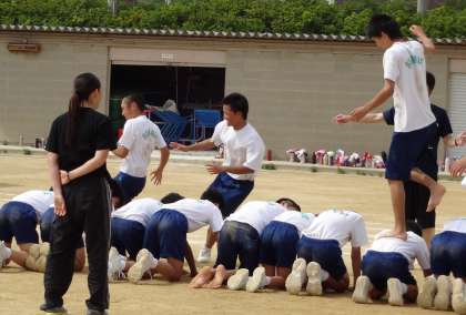 生徒たちは一生懸命行進やリレー、学年種目の練習をしています。