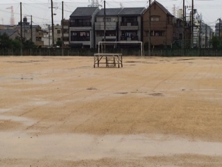 運動場の真ん中にポツンと一人、朝礼台が寂しそうです。