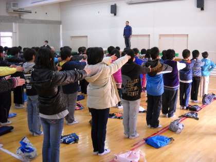 ↓集団行動の練習。(0.01秒の速さ!!スバラシイ整列☆)