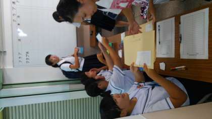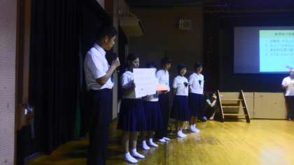 住吉中学校で行われたブロック研究会に本校の生徒会執行部の5名が参加しました。