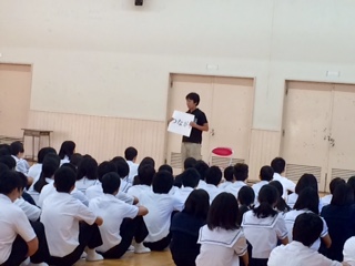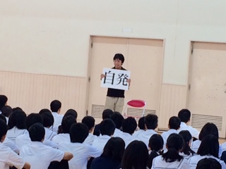 本日、三年生の学年集会があり、浅地先生からお話がありました。