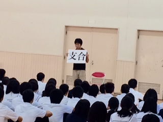 10月28日に行われる、中学校生活最後の文化発表会に向けて、一年生時の目標「つながり」二年生時の目標「自発」、そして今年の目標「支え合い」についてお話がありました。