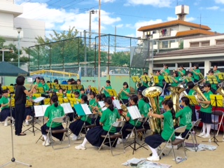 本日は、本校校区内にある「敷津浦学園秋まつり」のオープニング演奏を行いました。