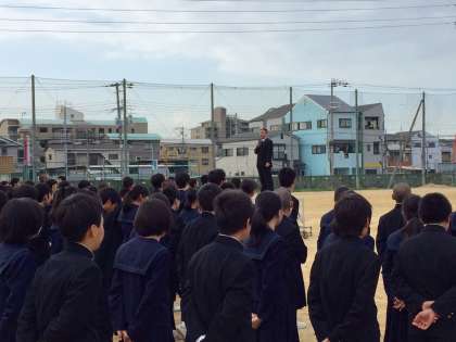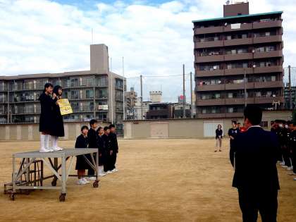 生徒会執行委員の認証式に引き続き、校長先生のお話、生徒会長のお話、保健委員会から連絡、金島先生のお話がありました。