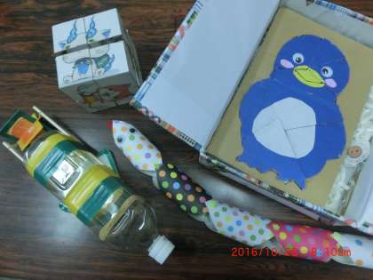 1歳から5歳までの幼児が喜ぶおもちゃを家にあるもので作りました。安全面に配慮していたり、楽しめるように工夫がしてあったりと、どれも丁寧に作っています。