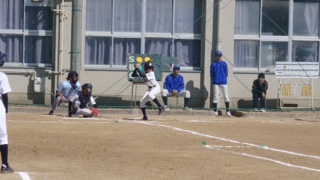 対戦相手は新北島中学校でした。5回終了まで0-0の同点、6回表に住之江がセーフティーバントと相手のミスで1アウト1.3塁のチャンスを作ったものの、後続が続かずに得点を奪えませんでした。その裏、新北島にヒットやフォアボールでランナーを出され、内野ゴロ野選とスクイズで2点を奪われました。これが決勝点となり、0-2で惜しくも決勝トーナメント1回戦敗退となりました。