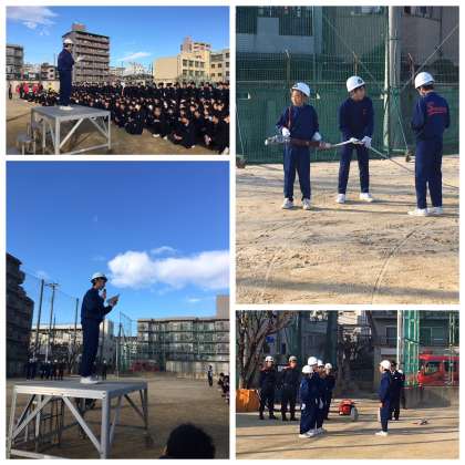 迅速な避難の結果、4分48秒で全校生徒の避難と点呼が完了しました。消防署の方からも、前向きにそして、真剣に取り組んでいる姿勢を褒めていただきました。