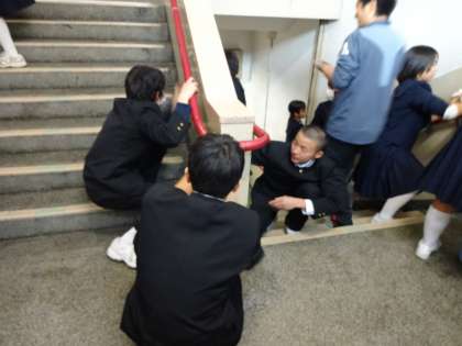 1月15日(水)の放課後、1年生の学級代表と一緒に、1年校舎の階段を掃除しました。
