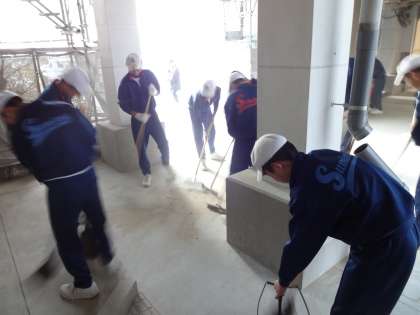 1月17日(金)の放課後、運動部・文化部合わせて147名と一緒に、校舎の廊下や階段、体育館の掃除を行いました!
