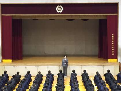本日、体育館で三学期の始業式が行われました。