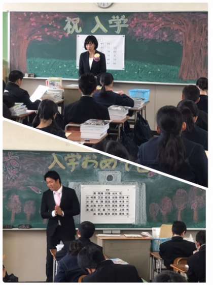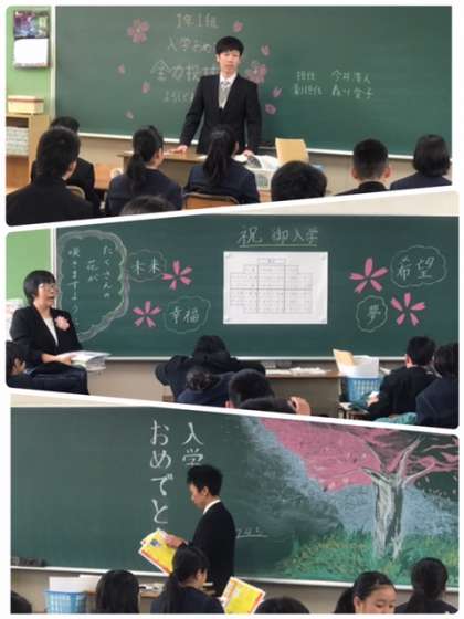 どのクラスの黒板にも、新入生を歓迎するメッセージが書かれています。