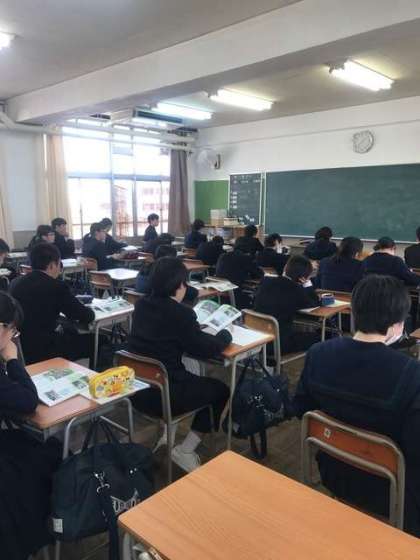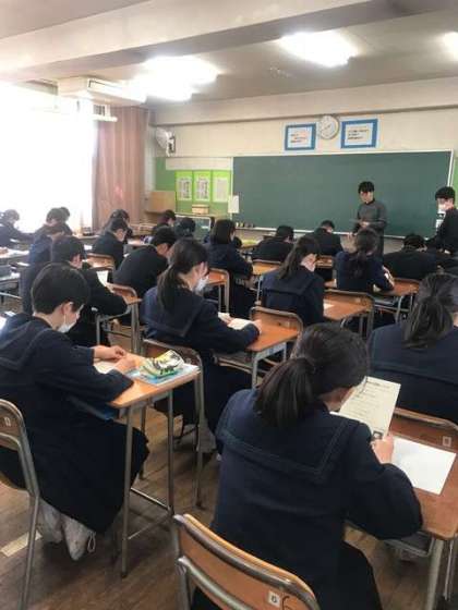 3年生の社会では、導入として歴史の資料を提示して学習していました。いよいよ受験生ということもあり、授業の大切さを理解しているようでした。