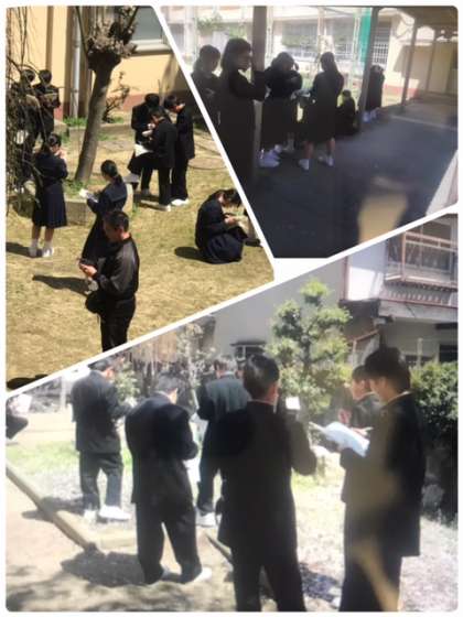 中庭やプール横、グラウンド等のいろんなところで、植物図鑑を手にしながら学習していました。