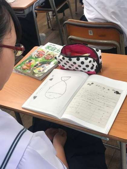 家庭科の授業では、ボタンの縫い付けを学習しています。