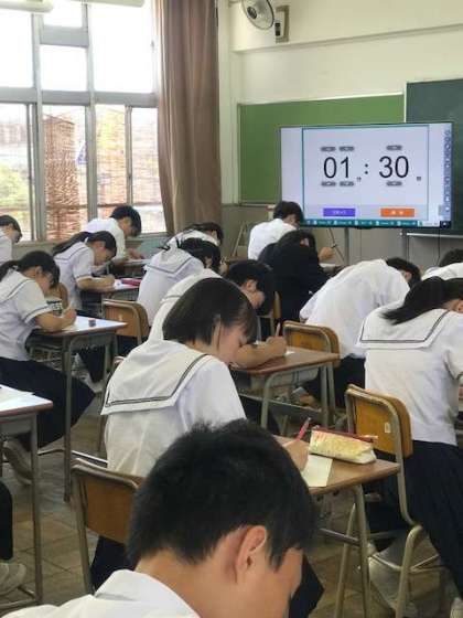 大型モニターに時間を表示させて、生徒たちにもわかりやすく工夫されています。