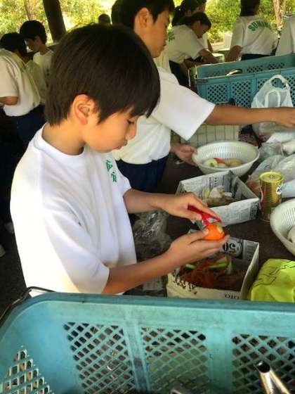 はじめてお米を研いだり、野菜を切ったりする生徒たちもいます。