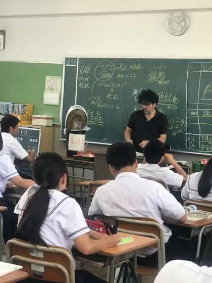 粘質の異なる物質を実際に示しながら、どのように溶岩が流れていくのかを説明しています。