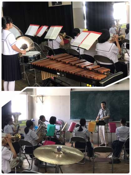 本格的な指導のもと、部員たちは真剣な表情で演奏しています。