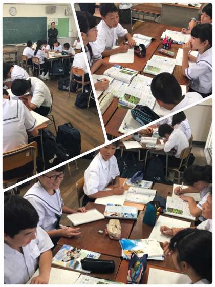 課題に対する回答を予想し、検証してまとめ、発表するといった活動を班で行なっています。
