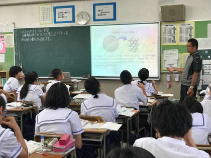理科の授業では、化学変化と原子・分子の学習を行なっています。