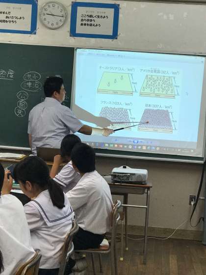 いくつかの国の人口密度を、生徒たちに視覚的に示しています。グループ学習を取り入れ、地域調査、文献調査を行う際の視点や方法、地理的なまとめ方の基礎を理解することをねらいとしています。