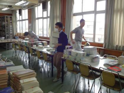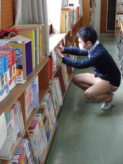 図書館支援ボランティアさんとともに、棚を掃除し、本の並べ替えを行いました!