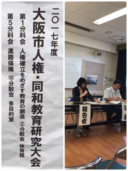 本日、市岡東中学校において、第5分科会 進路保障で小野先生が発表されました。