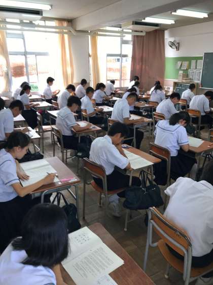 1限目 1.2年生は理科、3年生は英語のテストです。