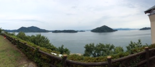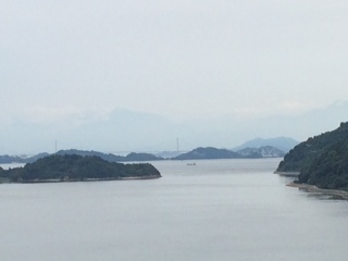 大崎上島からの風景です。奥に見えるのが、今日の午前中にサイクリングを行った「しまなみ街道」です。