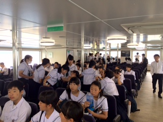 フェリーで大崎上島を出港し竹原港に向かっています。