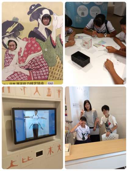 エアコンが効いた中、様々な漢字にまつわるゲームを体験しています。