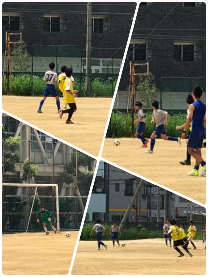 本日、花乃井中学校と練習試合を行なっています。本校のメンバーを3チームに編成して、全員が試合に出場しています。