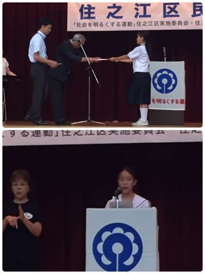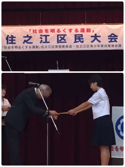 本日、住之江区民ホールで「社会を明るくする運動」の標語及び作文の表彰式が行われました。