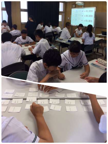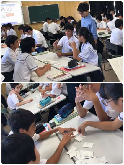 グループ学習でかるたを取り入れた、生徒たちが主体的な活動がみられます。