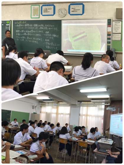●2年生理科の授業では、NHK10min.で単元のまとめ映像を観て、学習内容の定着を図っています。