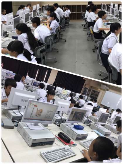 ●2年生技術の授業では、パソコン教室で各自がパワーポイントの作成をしています。