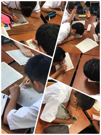 細かいマス目の紙に、それぞれ決められた色付けをしていきます。