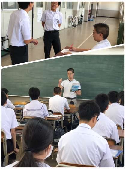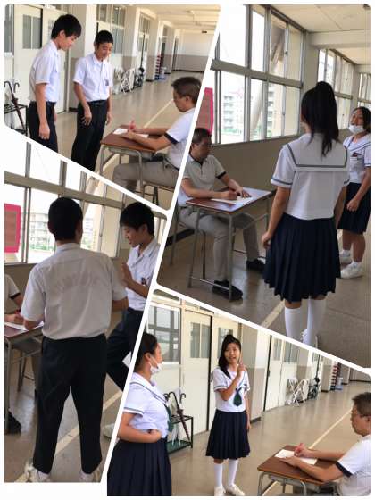 二人組になって教科書の会話文のスピーキングを行なっています。