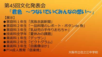 それぞれの展示教室は、「文化発表会展示教室一覧」をご参照ください。