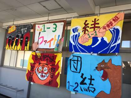 体育大会クラス旗「Over the top 〜うさぎを抜かせる亀になれ〜」