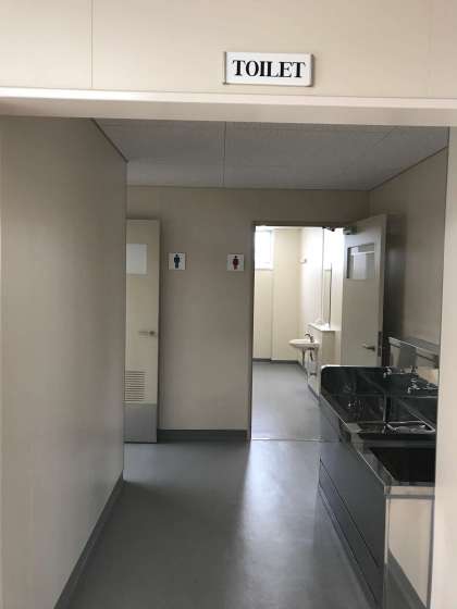 夏休み中から工事していました、体育館2階トイレの改修が完了しました。