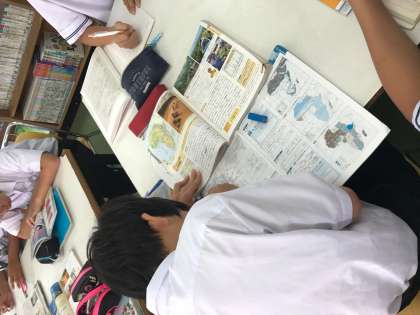 調べ学習として図書室の本を活用したり、中間テストに向けて資料をまとめたりしています。