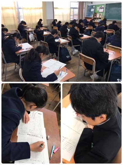 1年生の6限目は、各クラスで漢字検定に取り組んでいます。