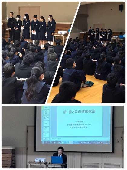 保健委員から発表があり、その後に学校歯科医澤田先生からのお話を聞きました。