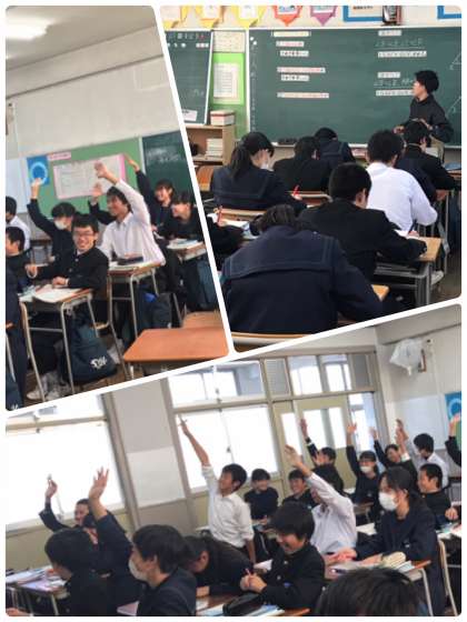 挙手する生徒たちが多く、活発な授業風景が見られました。
